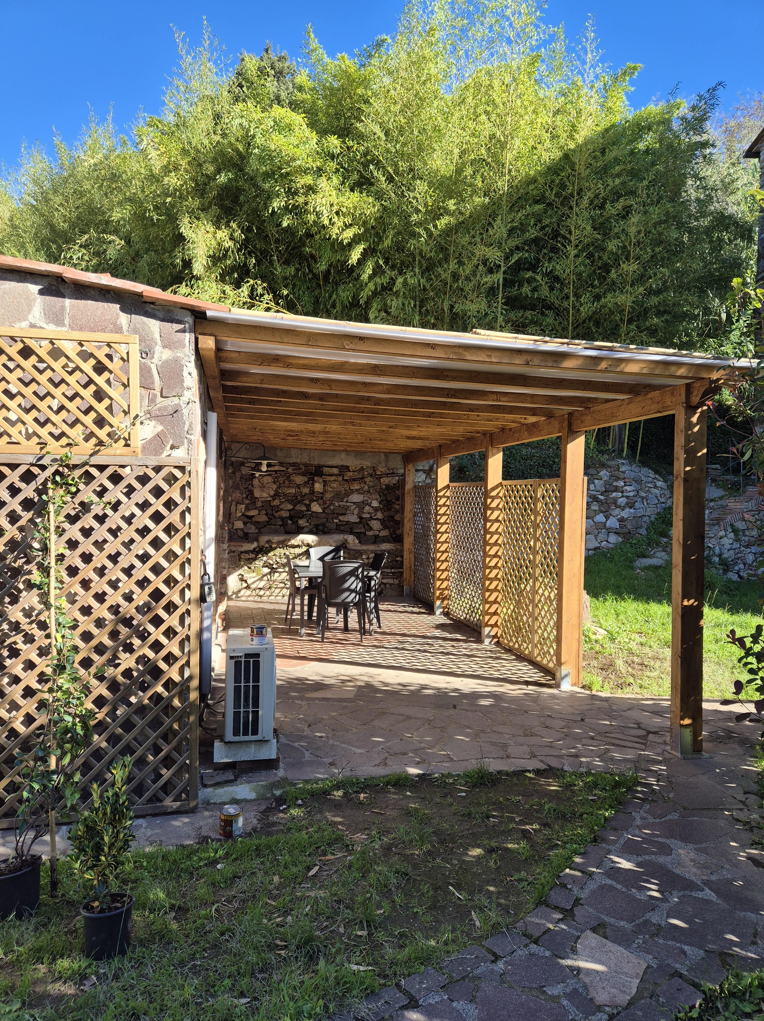 Monolocale indipendente completamente accessoriato, con giardino privato provvisto di tavolo, sedie e barbecue in muratura.