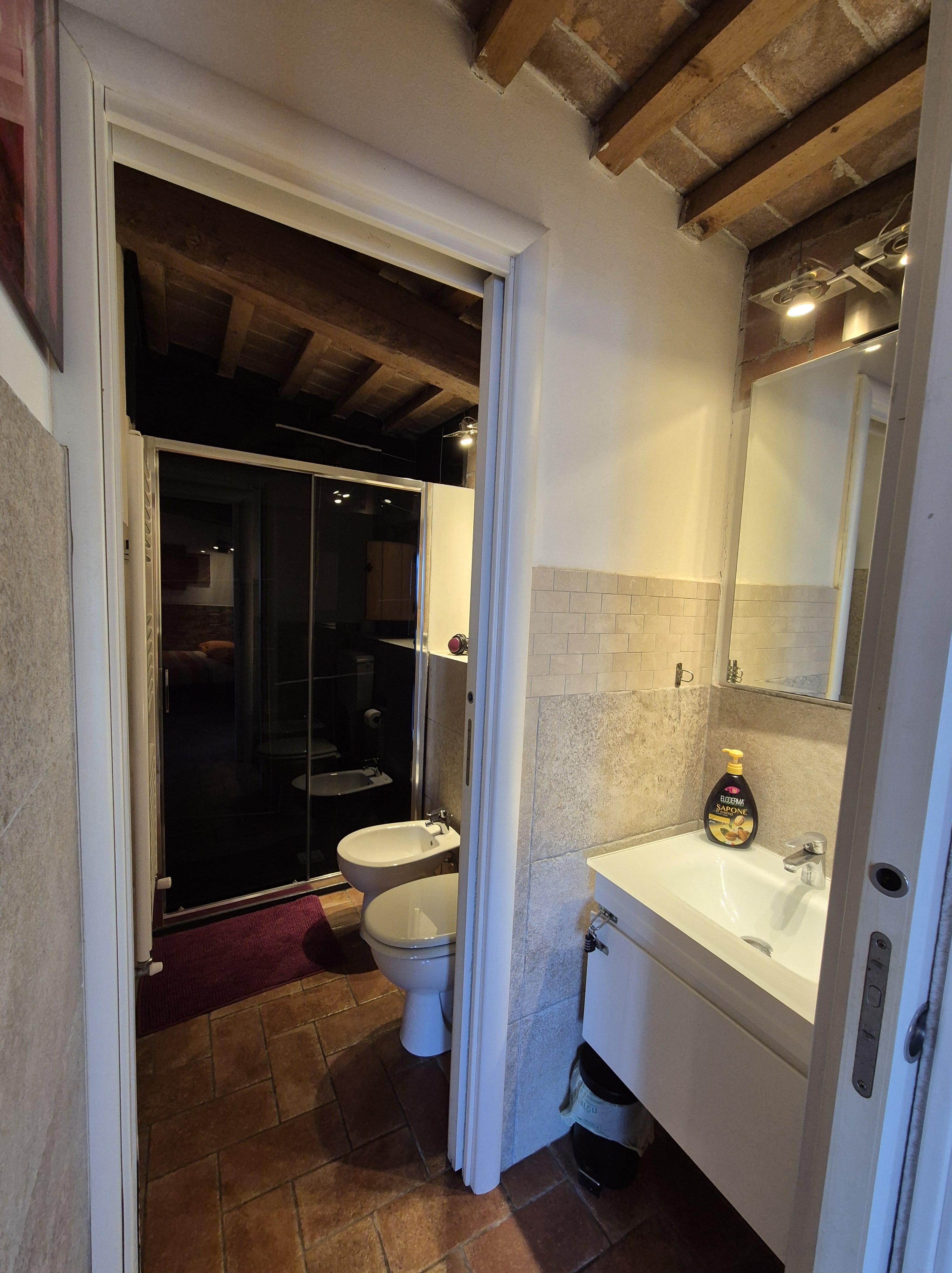 Bagno completo (WC, doccia, lavandino) al piano terra e bagno completo (WC, bidet, doccia, lavandino) al piano superiore. Il mobilio viene cambiato regolarmente.